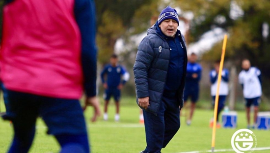 Diego Maradona, el martes durante su primer entrenamiento oficial al frente de Gimnasia y Esgrima.