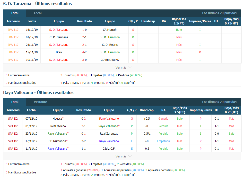 Tarazona vs Rayo Vallecano Resultados y Cuotas