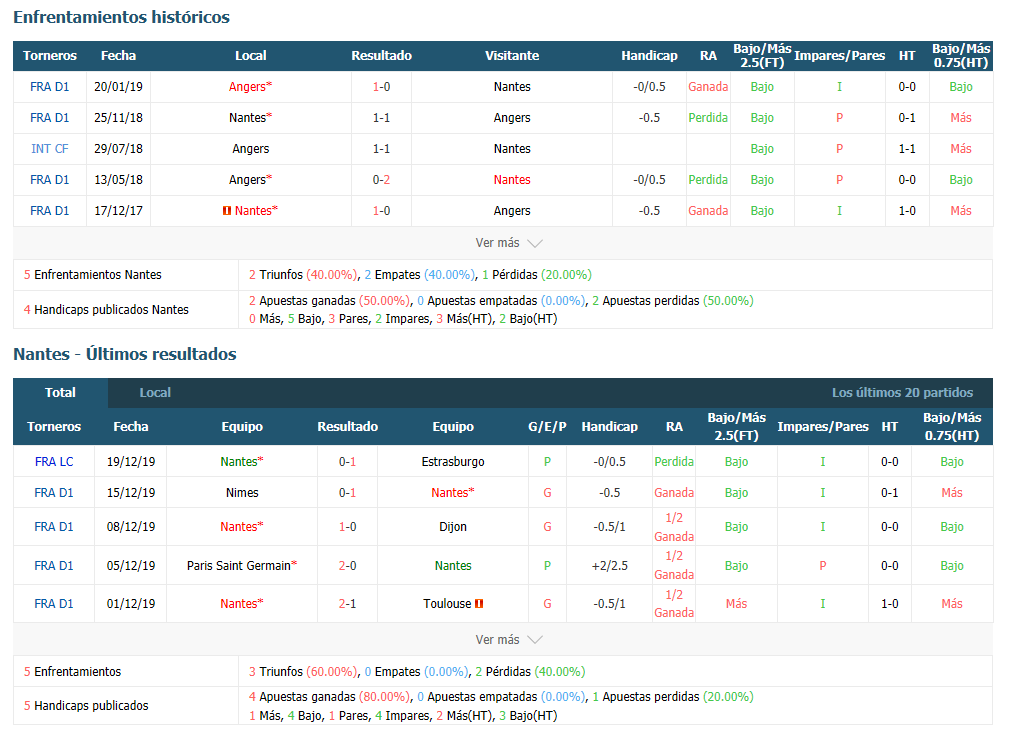 Bienvenido a nuestra vista previa del juego entre Nantes y Angers, jugado en Nantes el 21 de diciembre de 2019. Este será un juego entre dos equipos que han superado ligeramente esta temporada. Nantes ciertamente ha sorprendido y actualmente está en quinto lugar, solo un punto detrás de Rennes en cuarto. Angers es décimo, pero recientemente ha estado en mal estado. El equipo visitante en este juego ha perdido 3 de sus últimos 5 juegos, registrando una victoria solo contra el penúltimo Nimes en casa.